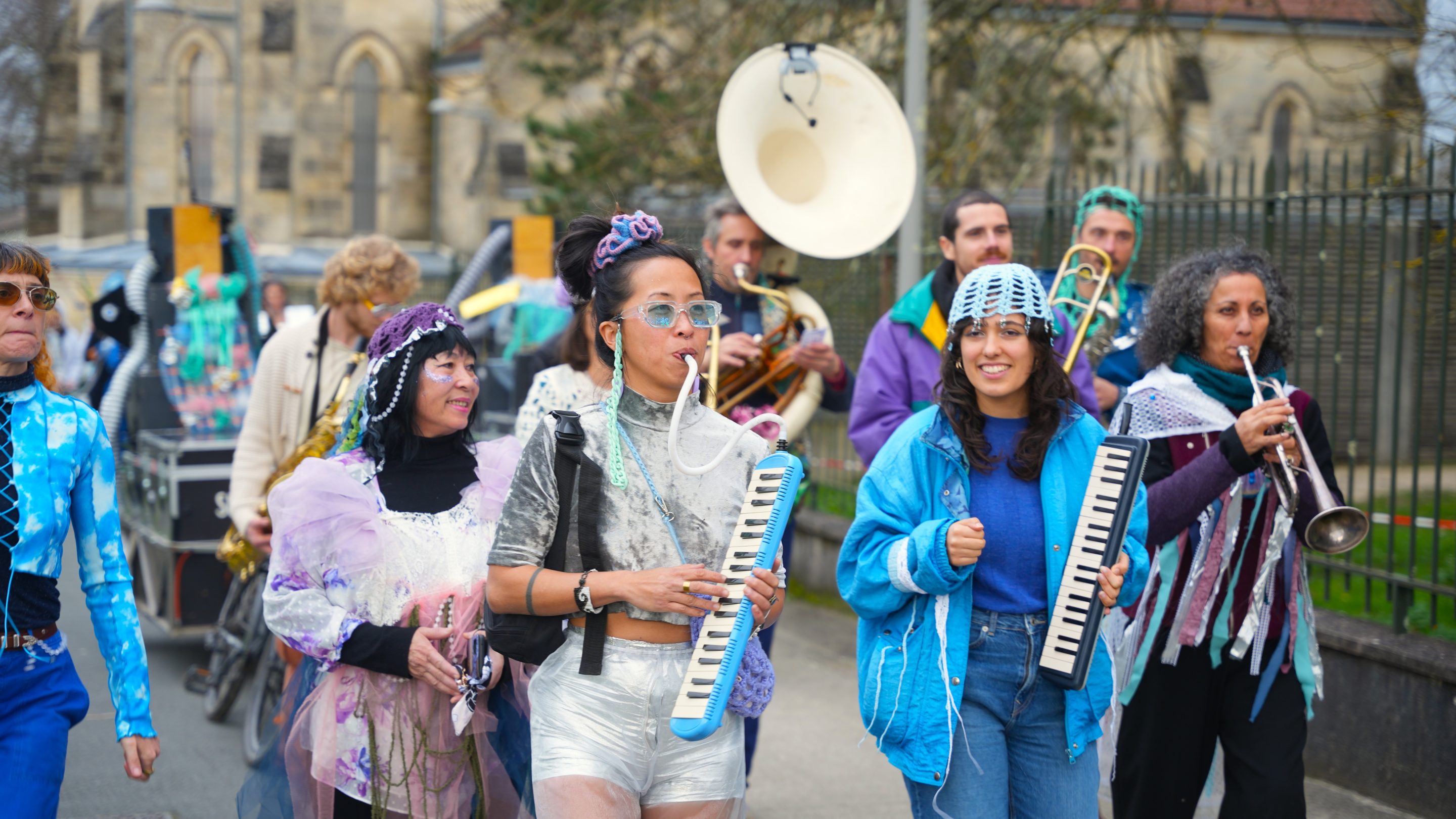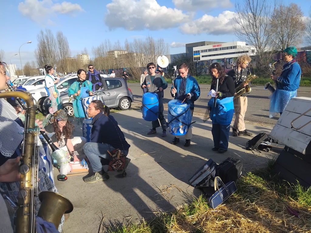 Le Rocher de Palmer et la Rock School Barbey avaient organisé la fête, préparée depuis longtemps dans les quartiers, sur la rive droite dans les centres d’animation, les centres sociaux, à la fabrique Pola : fabrication de chars, de personnages burlesques, de masques, ateliers de percussion, de musique et de danse.